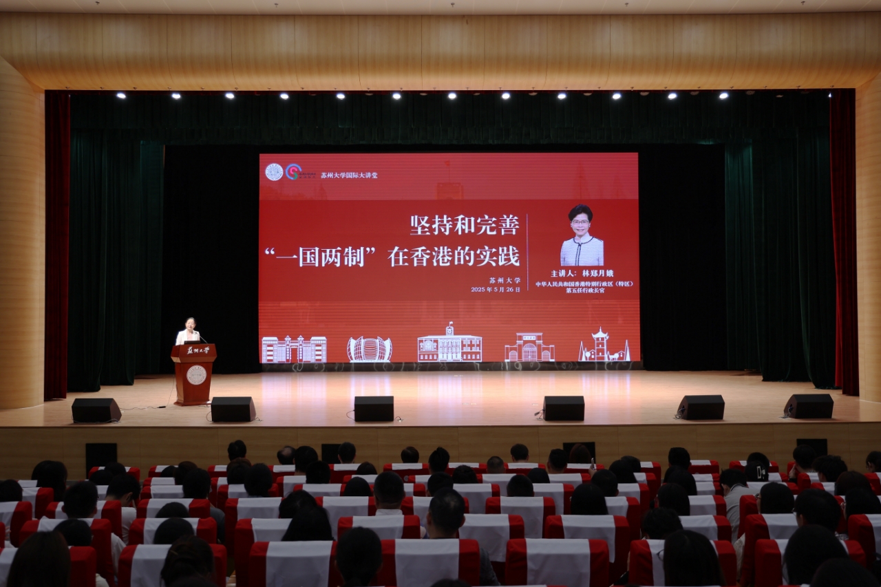 會見后,林鄭月娥在學校存菊堂以《堅持和完善“一國兩制”在香港的實踐》為題發表演講。結合自身履職經歷,她系統回顧了“一國兩制”產生的歷史背景和實踐歷程,從政治、經濟、社會等多個維度論證了“一國兩制”是中國特色社會主義的偉大創舉,是香港保持長期繁榮穩定的最佳制度安排。她表示,有“一國兩制”保駕護航,香港一定能更好地發揮“背靠祖國,聯通世界”的優勢,積極融入國家發展大局。講座中,她還介紹了香港打造國際高端人才集聚高地的發展規劃及吸引海內外人才的具體舉措,誠摯邀請廣大青年學子赴港學習、就業和發展,攜手為強國建設、民族復興貢獻智慧與力量。