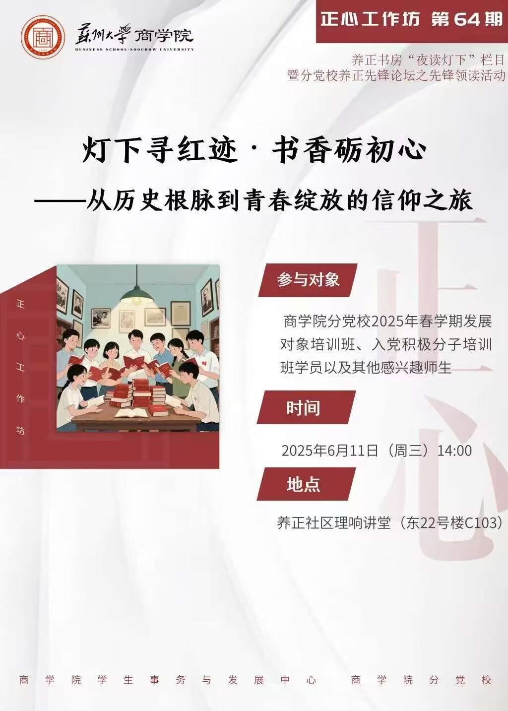 商學院正心工作坊第64期 燈下尋紅跡·書香礪初心——從歷史根脈到青春綻放的信仰之旅