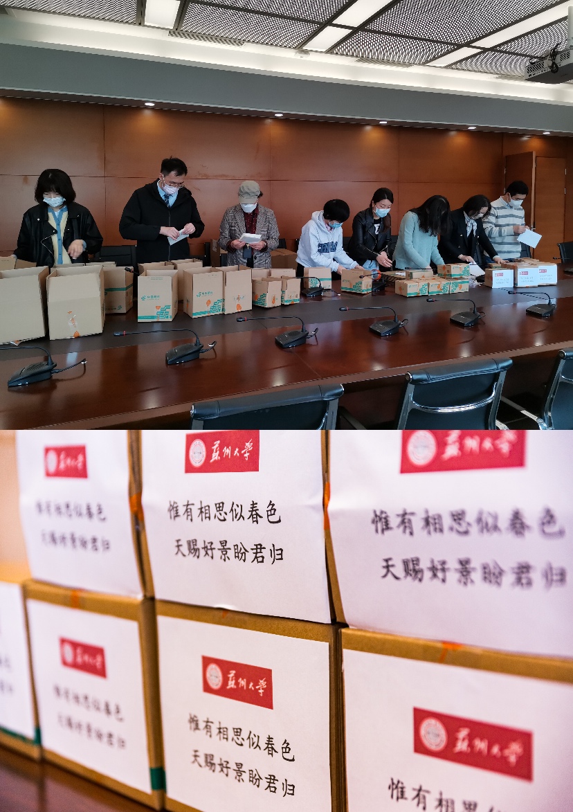 在校教職工紛紛助力口罩打包和快遞寄送,蘇大“健康包”火速出發!