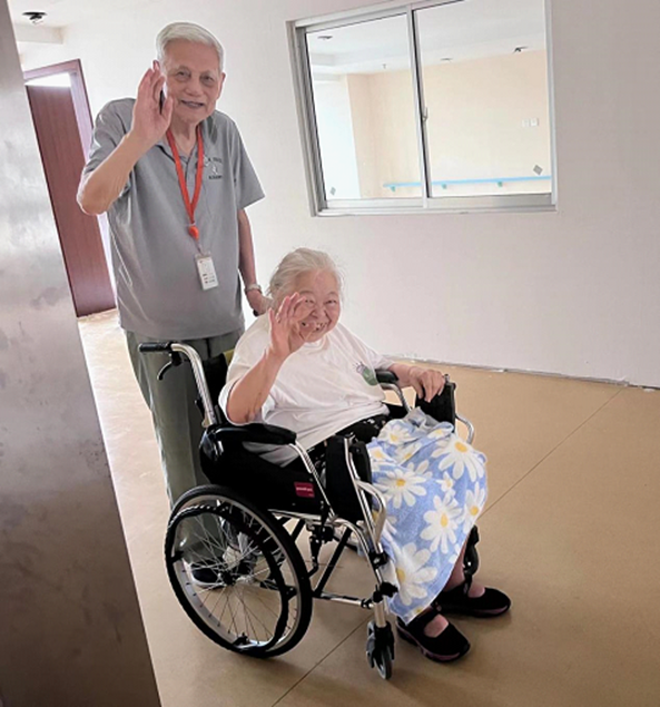 實踐團隊離開時,盛錦云依依不舍地與眾人告別。雖然她腿腳不便,但依舊讓老伴推著她的輪椅,堅持將團隊成員送到電梯口,目送隊員們離開。她的笑容燦爛又慈祥,目光中充斥著對后輩的關懷與厚望。