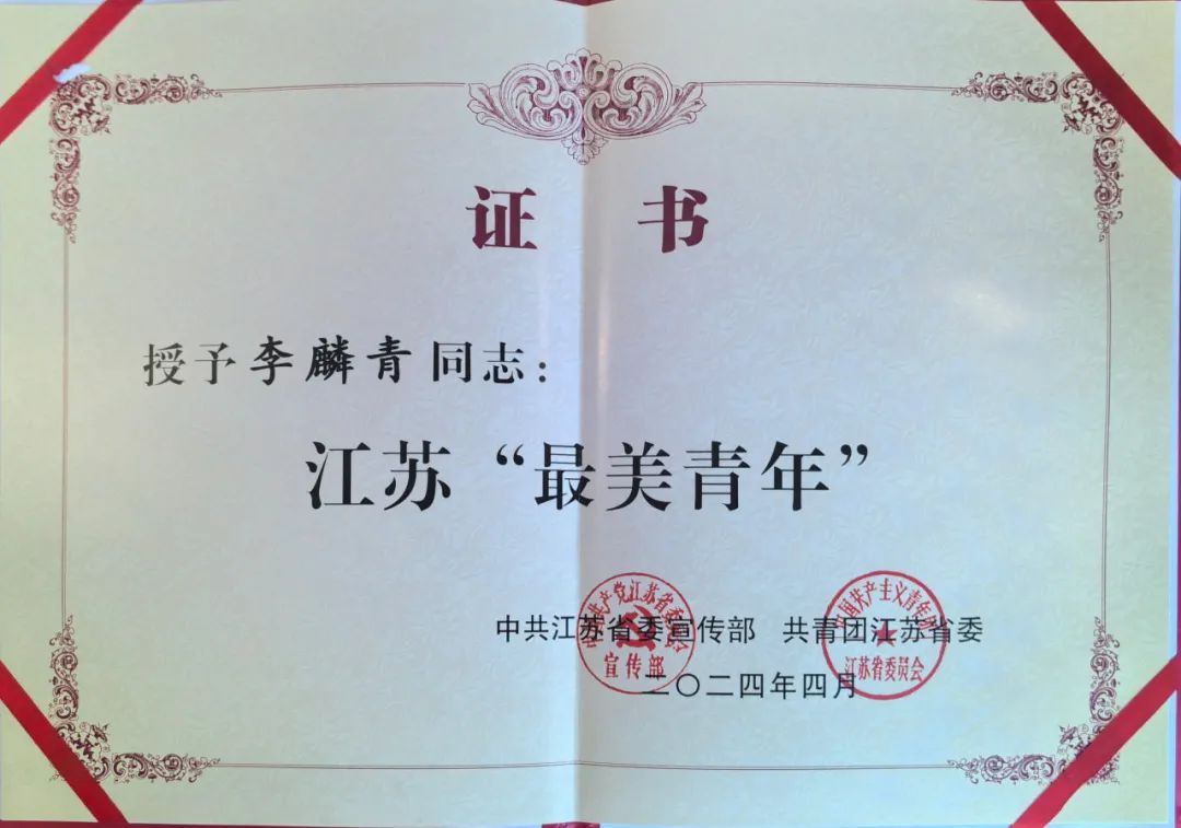 我校校友李麟青榮獲江蘇“最美青年”稱號