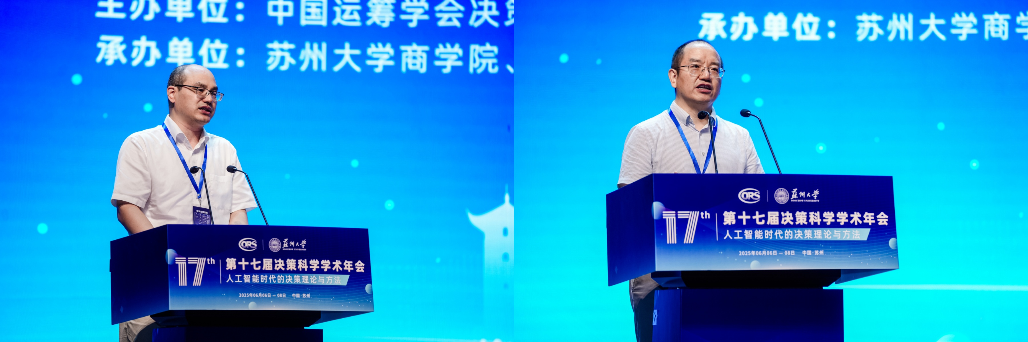 中國運籌學會決策科學分會理事長李建平、中國管理現代化研究會管理與決策科學專業委員會理事長余樂安先后致辭,介紹了決策科學分會、中國管理現代化研究會的發展歷程和宗旨,闡述了人工智能時代研討決策理論與方法的時代使命,表示希望通過本次學術年會,匯聚各位專家學者的思想智慧,共同推動決策科學事業的蓬勃發展。