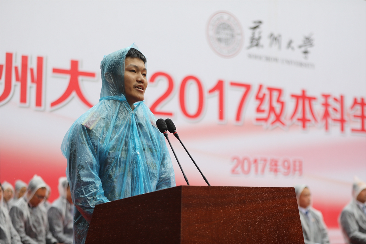 敬文書院、物理與光電·能源學(xué)部物理學(xué)專業(yè)的許致文同學(xué)作為2017級新生代表首先發(fā)言。“十年前,我隨母親一起參觀了蘇州大學(xué),深深地被這所學(xué)校的魅力所吸引,從那時起我就立志要考取蘇大,在我高考的8個志愿中,僅填報(bào)了蘇州大學(xué),幸運(yùn)的是我終于成為一名蘇大人。”許致文說,作為蘇大人,今后一定會不斷修煉品德、培養(yǎng)健全人格,不忘歷史使命和社會責(zé)任,以思想為骨,理想為翼,過好當(dāng)下,放飛未來。