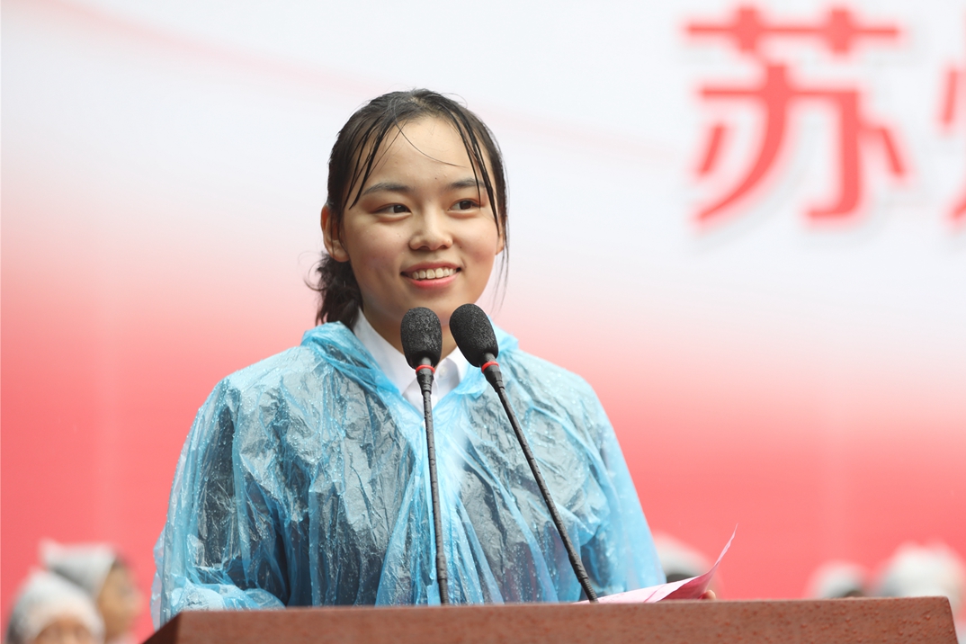 文學(xué)院漢語言文學(xué)專業(yè)的折琪琪同學(xué)代表高年級學(xué)生發(fā)言。“三年前,我和你們一樣,幸運(yùn)地走進(jìn)蘇大,感受到教育給予人生命的尊嚴(yán)和意義。我們在這里學(xué)習(xí)專業(yè)知識,不管哪一條道路,只要你我珍惜青春,樂于學(xué)習(xí),不斷嘗試,在這里我們必將擁有屬于自己的精彩。”她鼓勵學(xué)弟學(xué)妹們,要有鍥而不舍的耐心、開拓視野的信心、擔(dān)當(dāng)責(zé)任的決心,勇敢書寫自己的青春故事。