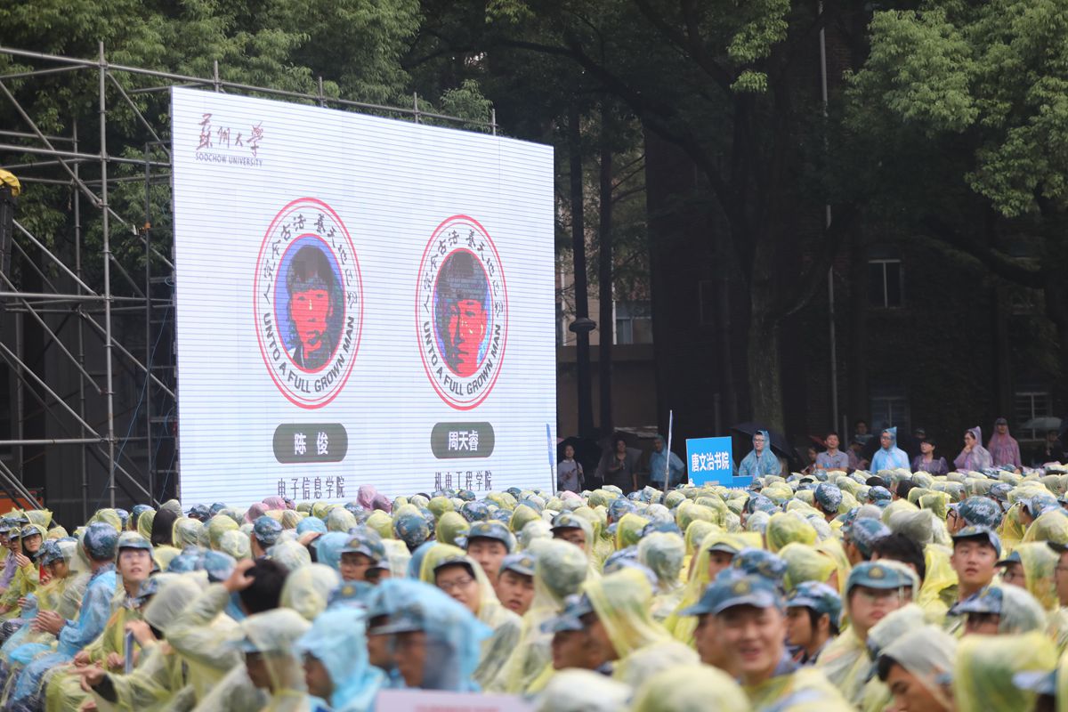 “太溫暖了,太感動了!” 儀式結(jié)束后,計(jì)算機(jī)科學(xué)與技術(shù)學(xué)院吳海洋同學(xué)一邊喝著食堂提供的免費(fèi)姜湯,一邊感慨:“今天是我的19歲生日,在開學(xué)典禮上收到全校師生的生日祝福,讓我十分驚喜、萬分感動。蘇州大學(xué)是一個充滿愛的大家庭,雖然今天陣雨不斷,涼風(fēng)習(xí)習(xí),但是在這里我感受到了學(xué)校帶來的真正溫暖。感謝蘇大,給了我這樣一份彌足珍貴的記憶。”