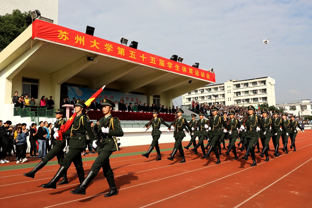 校黨委副書記、副校長路建美為本次校運會致開幕辭。她指出,我校一直以來高度重視體育工作,擁有較為深厚的體育文化。伴隨著蘇州大學的快速發展,學校的體育教育和體育工作也取得了豐碩的成果。在剛剛結束的第十三屆全國學生運動會上,蘇大的運動健兒們取得了優異的成績,再次捧回了“校長杯”。本次校運會既是一次對全校學生運動水平的檢驗,也是對學校體育工作的大考核,也是一次對全校師生精神風貌、意志品格的檢驗與砥礪,是一場超越自我、勇攀高峰、實現夢想的成長公開課。全校廣大師生應自覺地將體育運動當成一種習慣,讓身心健康成為一種追求,積極投身到體育鍛煉中去。用更加健康的體魄,更加健全的人格,為學校國內一流、國際知名高水平大學建設,為中華民族偉大復興的中國夢,貢獻我們全部的力量。最后,她宣布,第五十五屆學生體育運動會正式開幕!