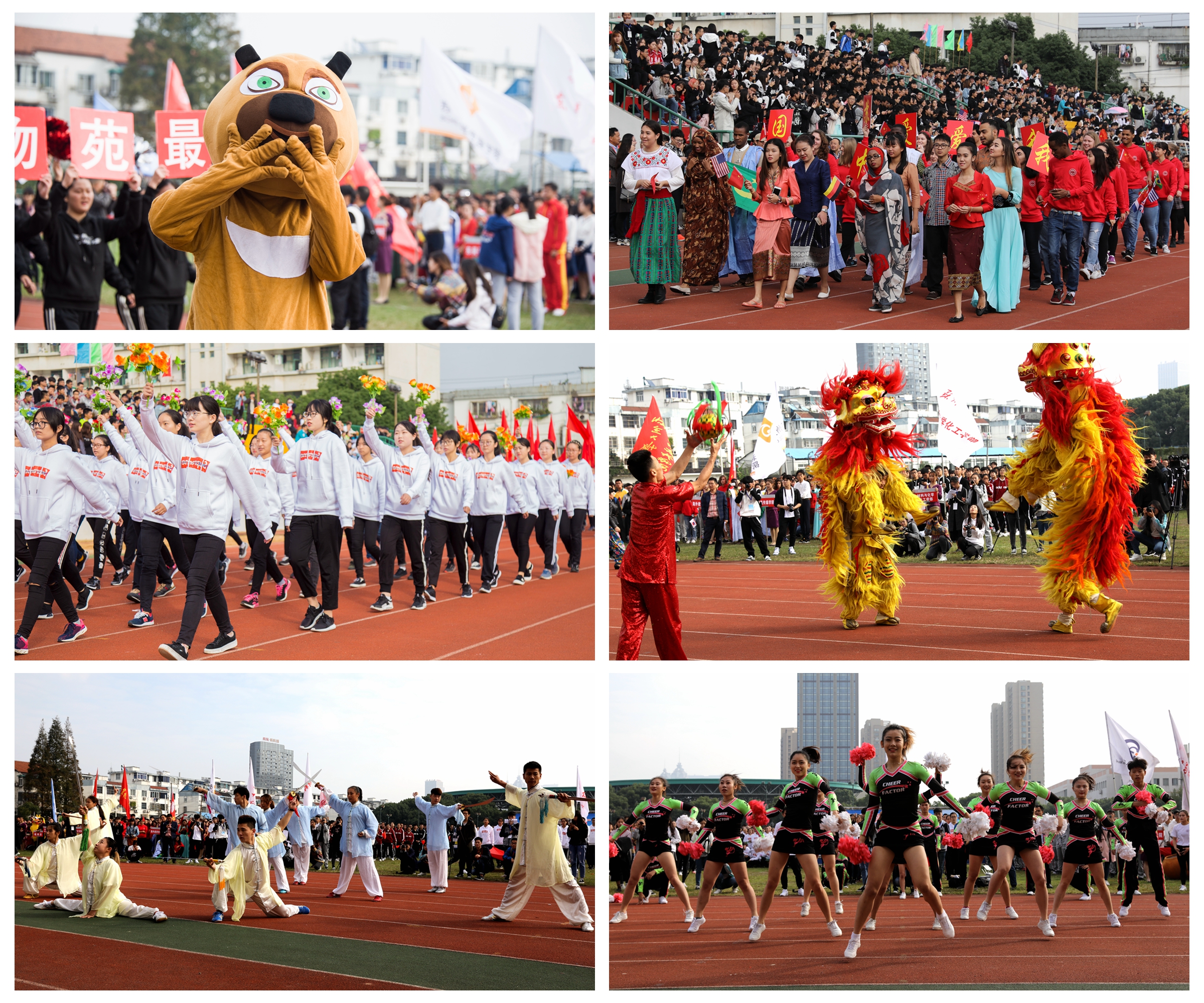 各學院(部)方陣和裁判員方陣伴隨著《運動員進行曲》整齊有序地進入賽場,并在主席臺前獻上了精彩紛呈的表演。機電工程學院、物理與光電·能源學部、東吳商學院等學院(部)都請來吉祥物助陣開幕式,唐文治書院的民國風著裝展現了江南女子的溫婉,海外教育學院學生的民族服飾充滿異域風情,體育學院精彩的舞獅、武術、啦啦操表演將現場的氣氛推向高潮。