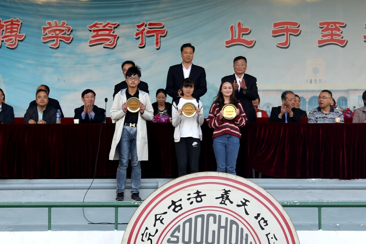 芮國強致閉幕辭。他代表學校和大會組委會,向取得優異成績的運動員表示熱烈的祝賀,向所有參加比賽的運動健兒致以崇高的敬意,向付出辛勤勞動的裁判員和工作人員表示衷心的感謝。他表示,經過兩天的激烈角逐,我校第五十五屆學生體育運動會圓滿完成了各項比賽任務,全體運動員弘揚“更快、更高、更強”的體育精神,頑強拼搏,展示了高超的競技水平和良好的競賽風貌,創造了驕人的運動成績。他指出,體育運動水平,不但反映一個學校體育教學和體育運動習慣的整體情況,也集中反映了這所學校的綜合實力。我校長期致力于發展體育運動事業,取得了輝煌的成績。今后,學校將繼續支持體育運動發展,使體育事業成為學校發展的重要力量來源。他希望,全體蘇大人能通過校運會培養自己堅韌的精神品質和強壯的體魄,把運動當作一種生活方式,為祖國健康工作50年,為學校創建“國內一流、國際知名高水平研究型大學”、為中華民族的偉大復興貢獻自己的力量!