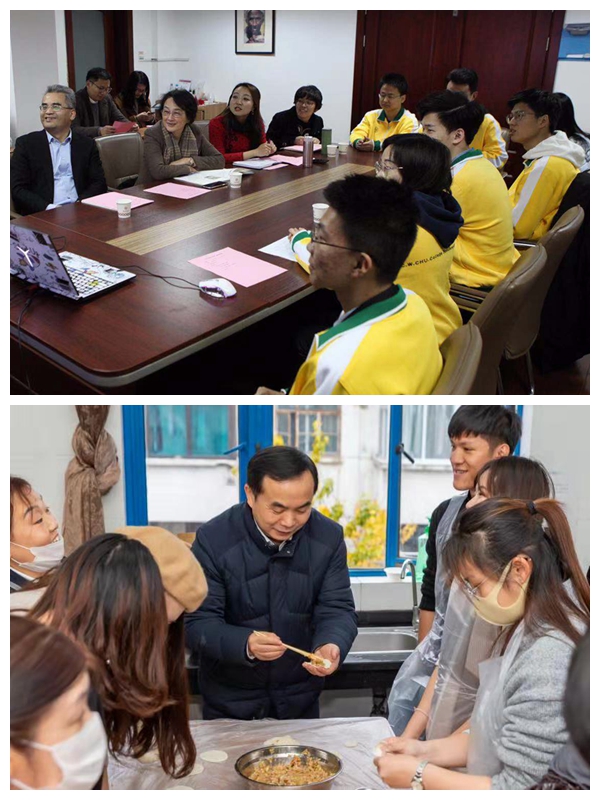 在紫卿書院學生公寓樓,2019級少數民族預科班全體同學和老師們一起包餃子過冬至,不僅加深了自己對冬至的了解和認識,深深地體會到了濃濃的師生情。海外教育學院來自五湖四海的留學生們演繹他們心中的中國故事,展現中華傳統文化的獨特魅力。不同國家的文明和風俗在這里交相融匯,將舞臺打造得亮麗繽紛。