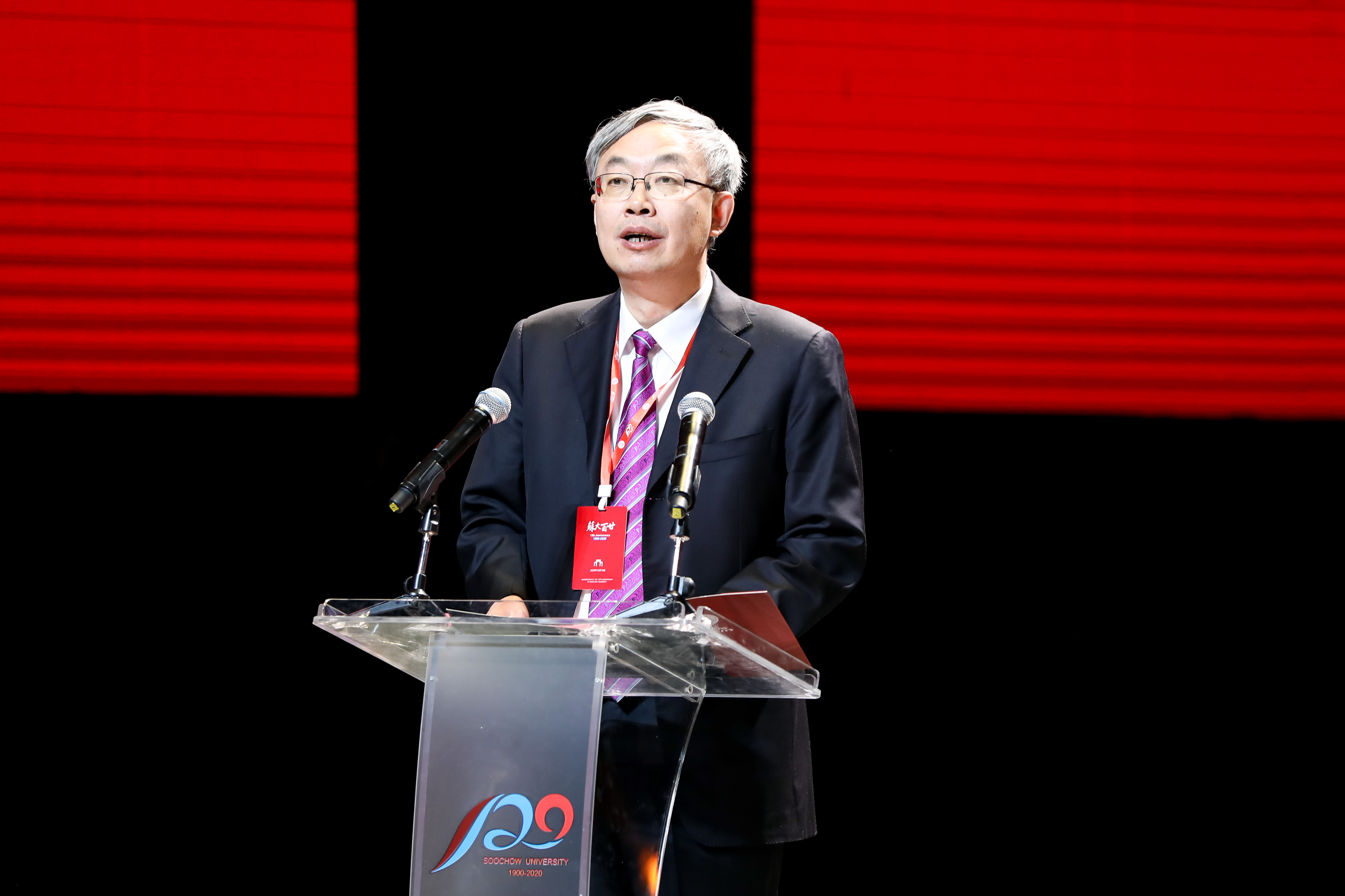 " 今天,在高等教育千帆競發、百舸爭流的新時代,學校確立了 ‘人民滿意、國際認可、世界尊重 ’高水平研究型大學的發展愿景,奏響了爭創中國特色一流大學的最強音。"熊思東校長在致辭中表示,百廿光影流轉,蘇大人向德而立、涵養正氣的自覺,向憂而生、振我家邦的情懷,向真而求、致知窮理的精神和向興而動、敢為人先的氣概從未改變。走過 120 年,蘇大如何去迎接新的甲子,去鑄就新的輝煌?熊思東校長一連用了五個 " 未來的蘇大 " 描繪。他說,蘇州大學將致力于建設成為一所更有格局、更有情懷、更有作為的大學,未來的蘇大將成為拔尖人才培養的豐沃之地、科學技術創新的蝶變之地、思想火花迸發的策源之地、世界文明交流的融會之地和大學形態重塑的引領之地。