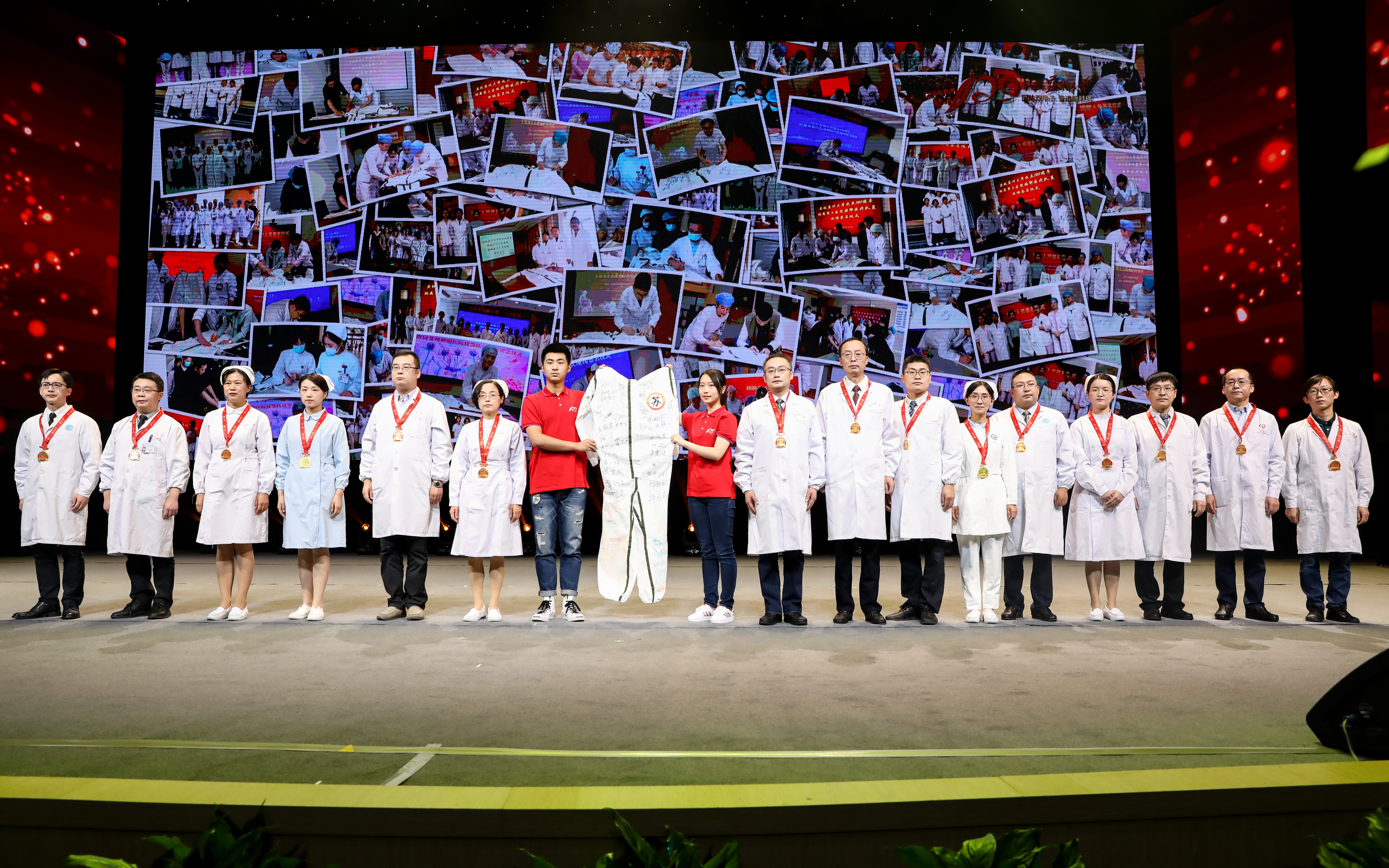 120年來,服務國家、奉獻社會始終貫穿著蘇州大學的發展。今年年初,新冠肺炎疫情突如其來,蘇州大學 12 家附屬醫院的204 名醫務人員出征馳援湖北。發展大會上,附屬醫院的援鄂英雄們,用一件簽滿姓名的防護服向母校獻上生日禮。這件簽滿了 204 名抗疫英雄名字的防護服,將被蘇州大學博物館永久收藏。而蘇大學子也將把這份醫者仁愛之心代代傳承。