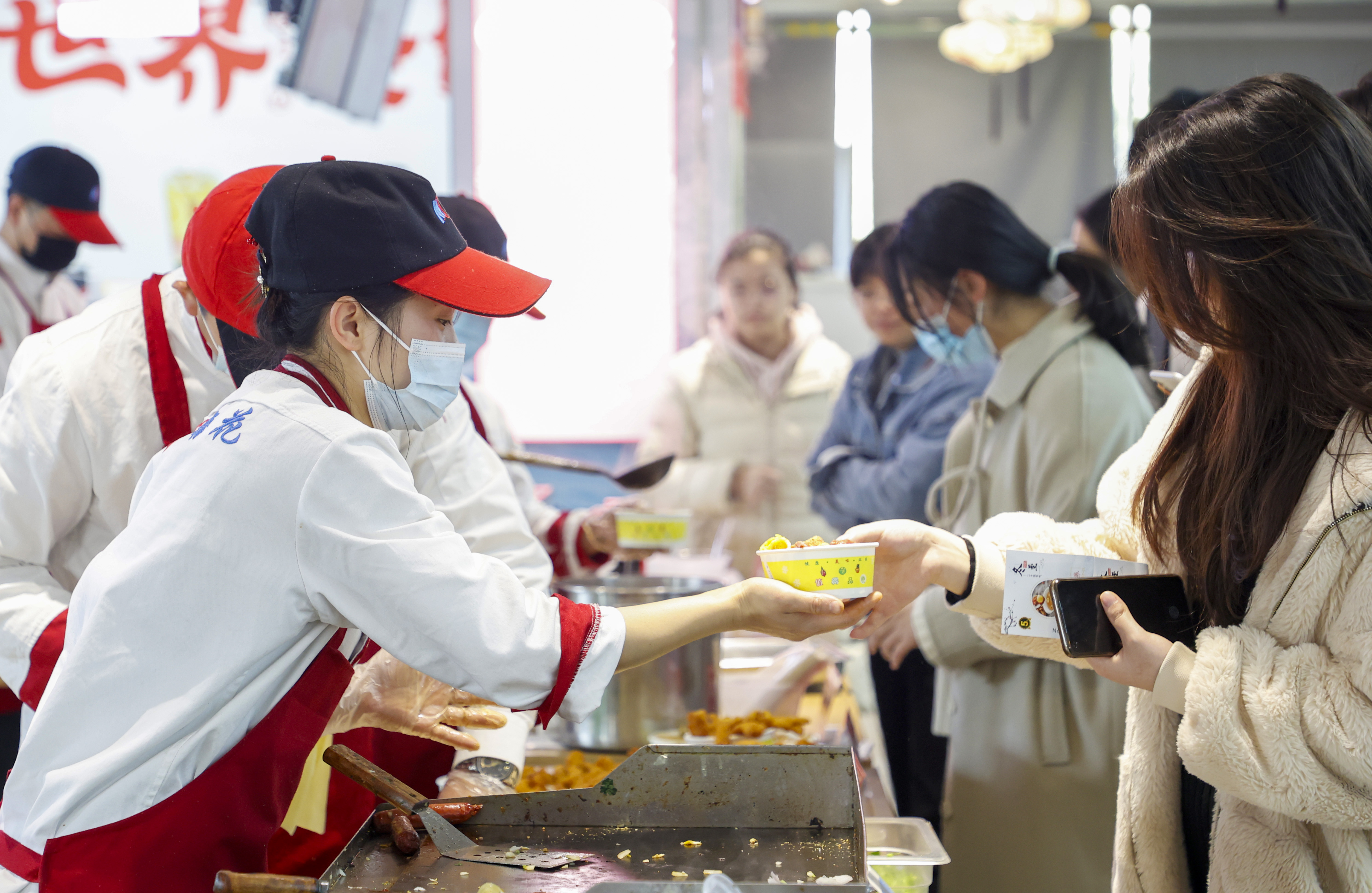 冬至夜當天,學校各校區學生食堂洋溢著歡樂的節日氛圍。活動現場,師生們排起長隊興致勃勃地品嘗著各類美食,酒釀元宵、水餃、各色蘇式鹵味、特色糕點、休閑小食琳瑯滿目,令人垂涎欲滴。為了讓同學們在寒冬過一個溫馨暖心的冬至節,延續往年慣例,今年學校仍為每位學生發放了10元加餐券。加餐券上印有著名書法家、我校華人德老師書寫的“亞歲迎祥,履長納慶”字樣,既寓意冬至迎納吉祥,寄托對美好生活的祈愿,亦有收藏價值。
