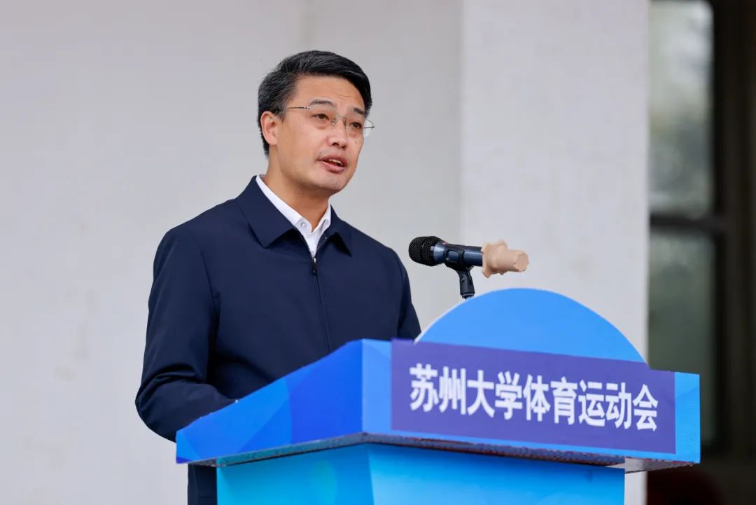 鄧敏代表學(xué)校及運(yùn)動(dòng)會(huì)組委會(huì)向取得優(yōu)異成績(jī)的代表隊(duì)及運(yùn)動(dòng)員表示祝賀,向為籌備和保障運(yùn)動(dòng)會(huì)成功舉辦而辛勤付出的師生員工表示感謝。他指出,舉辦校運(yùn)會(huì)是學(xué)校貫徹黨的教育方針、落實(shí)“五育并舉”、豐富校園文化生活、提高師生身體素質(zhì)、弘揚(yáng)新時(shí)代蘇大精神、砥礪爭(zhēng)創(chuàng)一流品格的重要舉措。希望全體蘇大人能將在賽場(chǎng)上展現(xiàn)出來(lái)的積極向上的狀態(tài)帶到學(xué)習(xí)和工作中去,努力為學(xué)校的“雙一流”建設(shè)、為建設(shè)社會(huì)主義現(xiàn)代化強(qiáng)國(guó)、為實(shí)現(xiàn)中華民族偉大復(fù)興的中國(guó)夢(mèng)作出積極貢獻(xiàn)。