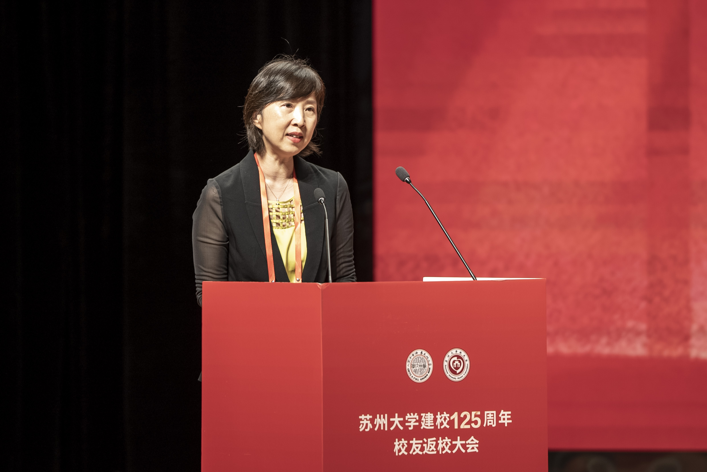洪曄代表學校向各位校友致以熱烈歡迎,向長期以來關心和支持母校建設發展的廣大校友表示衷心感謝。她圍繞人才培養、科研創新、教學改革等內容介紹了近年來學校的發展建設成果。她指出,校友們以赤誠之心回饋母校,更以實際行動踐行著蘇大校訓。未來,學校將著力構建雙向賦能的校友服務體系,進一步完善校友網絡,打造全球蘇大人發展共同體,實現校友與母校的共生共融。期待能與海內外校友攜手,共同為學校建設中國特色世界一流大學的目標貢獻力量。
