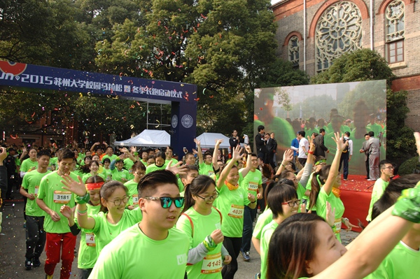 為全面貫徹落實(shí)黨的十八屆三中全會(huì)關(guān)于“強(qiáng)化體育課和課外鍛煉,促進(jìn)青少年身心健康、體魄強(qiáng)健”的精神,聯(lián)絡(luò)、凝聚校友,營(yíng)造和諧、向上的校園文化環(huán)境,擴(kuò)大蘇州大學(xué)的知名度和影響力,11月14日中午,U-run2015蘇州大學(xué)校園馬拉松起跑儀式暨冬季長(zhǎng)跑啟動(dòng)儀式在本部正式拉開序幕。