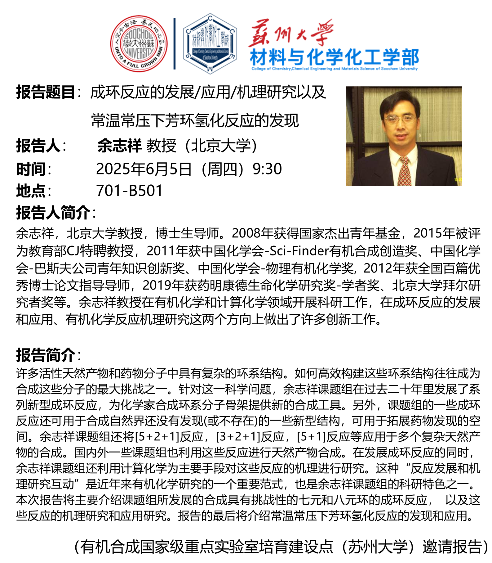 材料與化學(xué)化工學(xué)部學(xué)術(shù)報(bào)告:成環(huán)反應(yīng)的發(fā)展/應(yīng)用/機(jī)理研究以及常溫常壓下芳環(huán)氫化反應(yīng)的發(fā)現(xiàn)
