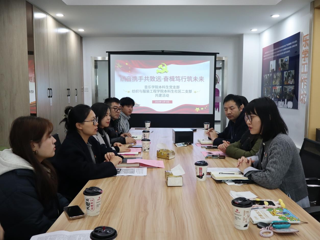 為深入推進黨建工作強基創優,提質增效,12月18日,紡織與服裝工程學院本科生社區二支部與音樂學院本科生黨支部共建交流活動在紫卿書院“一站式”學生社區舉行。音樂學院黨委副書記、副院長楊燕,音樂學院本科生黨支部書記、音樂學院學工辦主任張晶,團委書記于存洋,紡織與服裝工程學院黨委副書記、副院長虞嵐,以及雙方20余名師生黨員代表參加活動。活動由紡織與服裝工程學院本科生社區二支部書記、學工辦主任季彥斐主持。